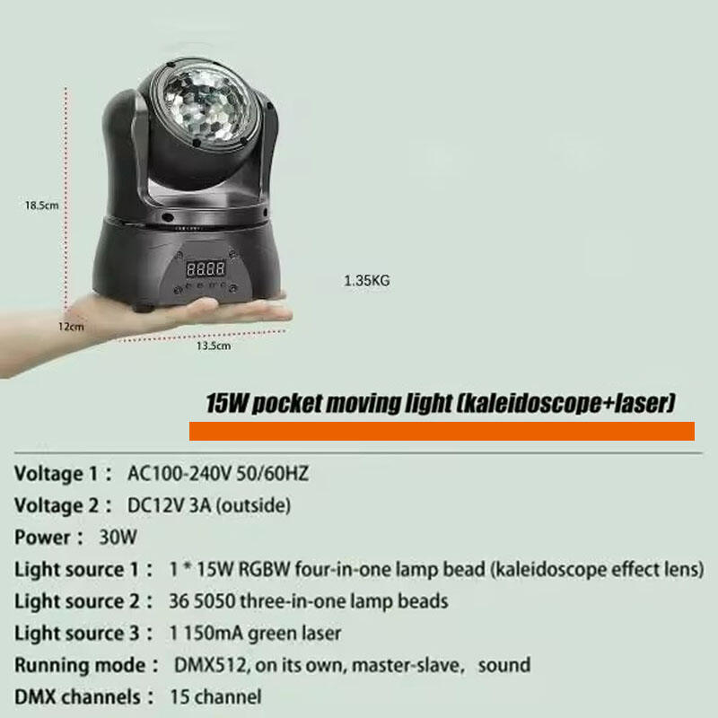 | Source light 1: | 1 *15W RGBW 4in1 LED ( kaleidoscope ) |