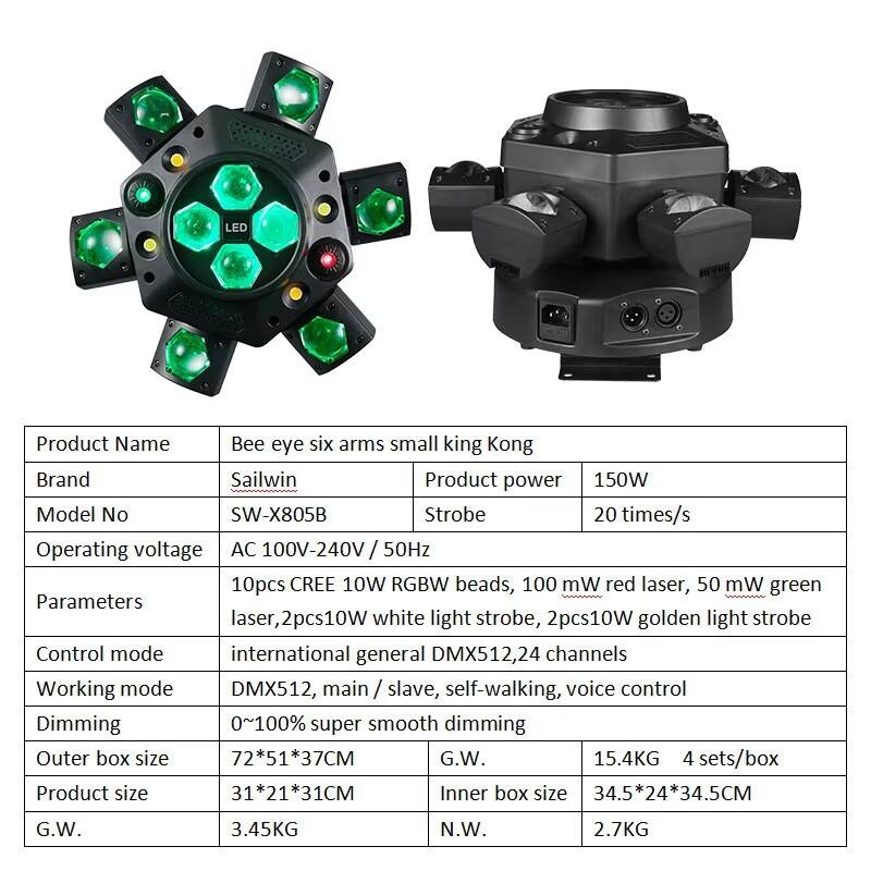 | LED Light Source 1: | 6 *10W RGBW beams |