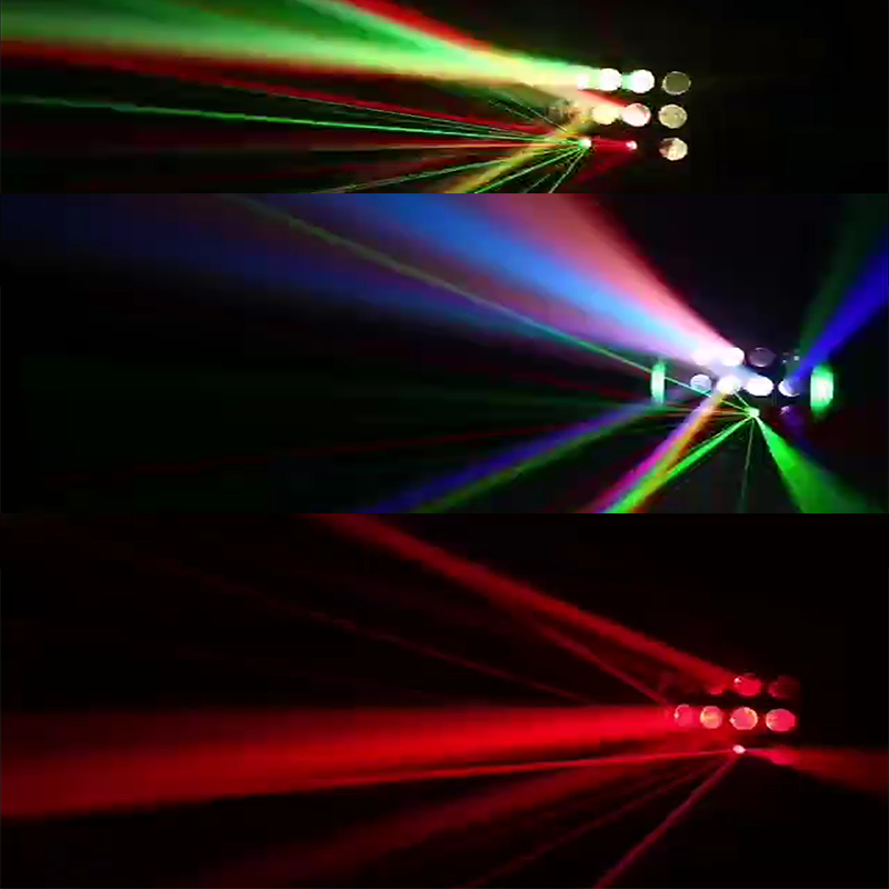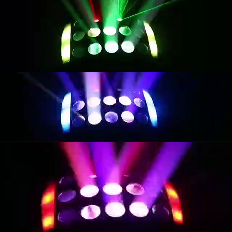 | Valolähde: | 2 kpl * 10 W RGBW 4:in 1 perhosenmuotoinen valo, 1 kpl * 10 W valkoinen strobivalo, 100 mw punainen laser ja 50 mw vihreä laser, 30 mW puna-vihreä laser, 16 kpl 5050 värikkäitä marquee-led-valoja |