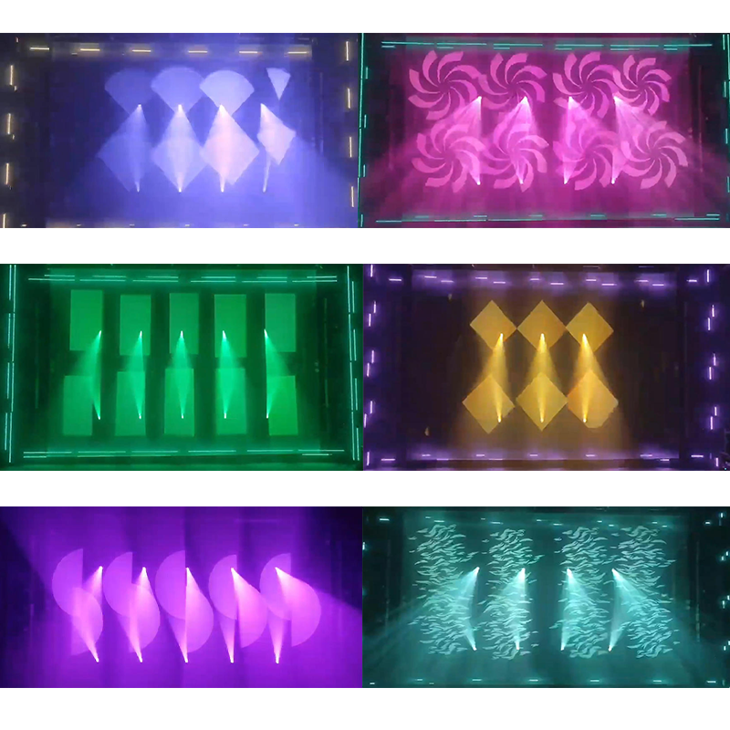 | Fiksuotas gobo: | 4 fiksuoti gobai, kurių greitis ir drebulys keičiamas |